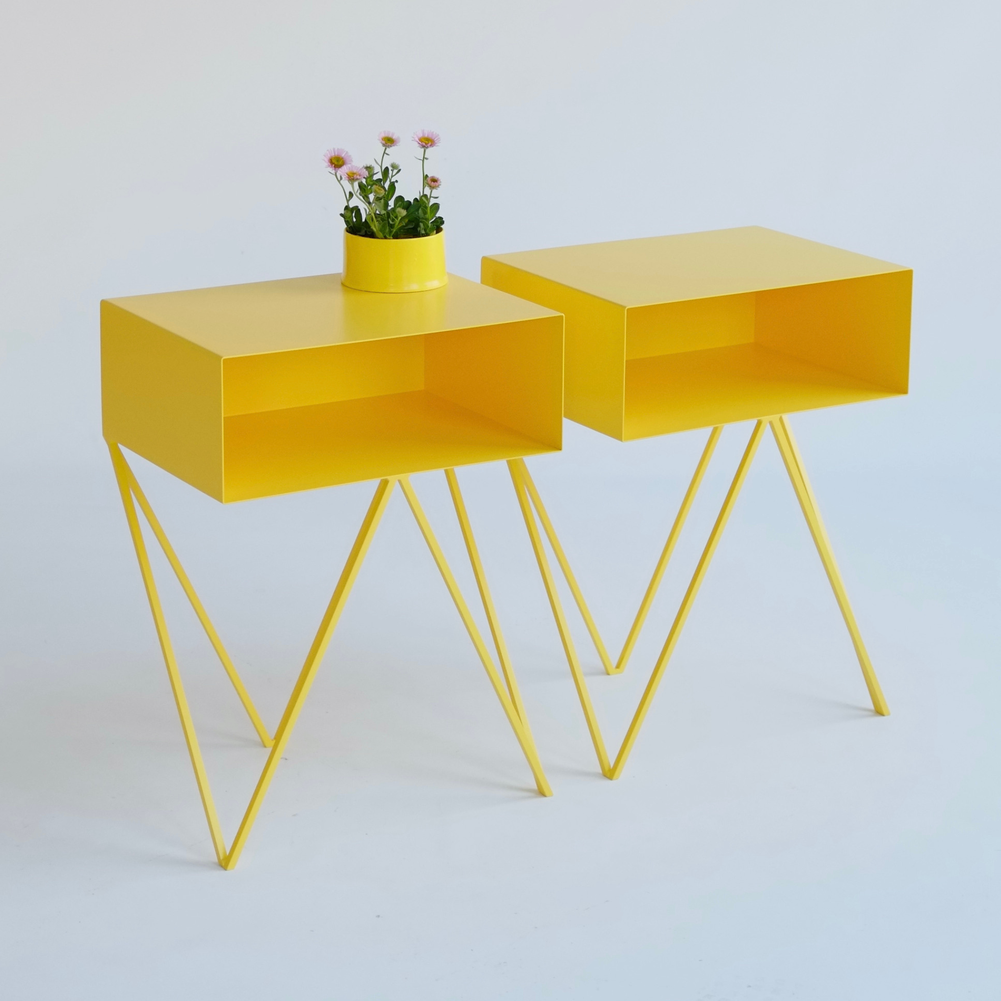 The Robot Side Table by &New brings playful geometry to your space with its zig-zag legs and open shelf design. Made from solid steel and finished in a durable powder coat, it's both quirky and practical - ideal as a bedside table or stylish sidekick in any room. Its clean lines sit beautifully in both modern and character-filled interiors. Available in fifteen standout colours. Each piece is made in small batches in Britain, where every weld adds its own unique character - subtle imperfections that celebrate the beauty of handmade design.